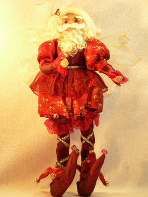 Дед Мороз в виде эльфа музыкальный бордо 45см
