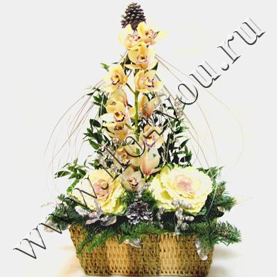 Эта необычная новогодняя елка из орхидеи Цимбидиум и декоративных элементов украсит Ваш праздничный интерьер.