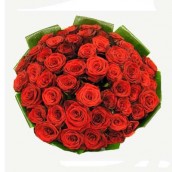 Букет из 51 розы Гран-при с декоративной зеленью в яркой упаковке.