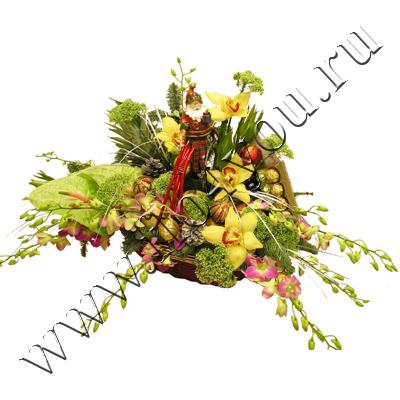 Подарочная корзина с экзотическими цветами и конфетами порадует Ваших коллег, партнеров или близких людей.