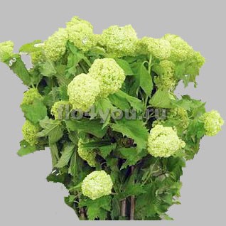 Нежно-зеленые соцветия Вибурнума, собранные в шарики, делают неотразимой любую композицию, будь то подарочная корзина с вином и фруктами, или большая интерьерная работа.